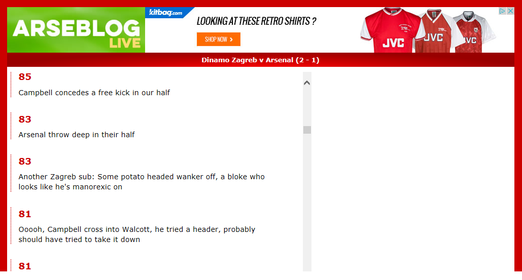 Yesterday, I had to “watch” the match via Arseblog live blog from my desk at work to get my fix, exchanging IMs with a like-minded colleague who was paying attention to the game by audiocast. I’m confident the game would have had a different outcome if I had been able to see it on TV, and so I feel that I have joint responsibility with Fox Sports for letting the team down. And the entire Arsenal fan base.