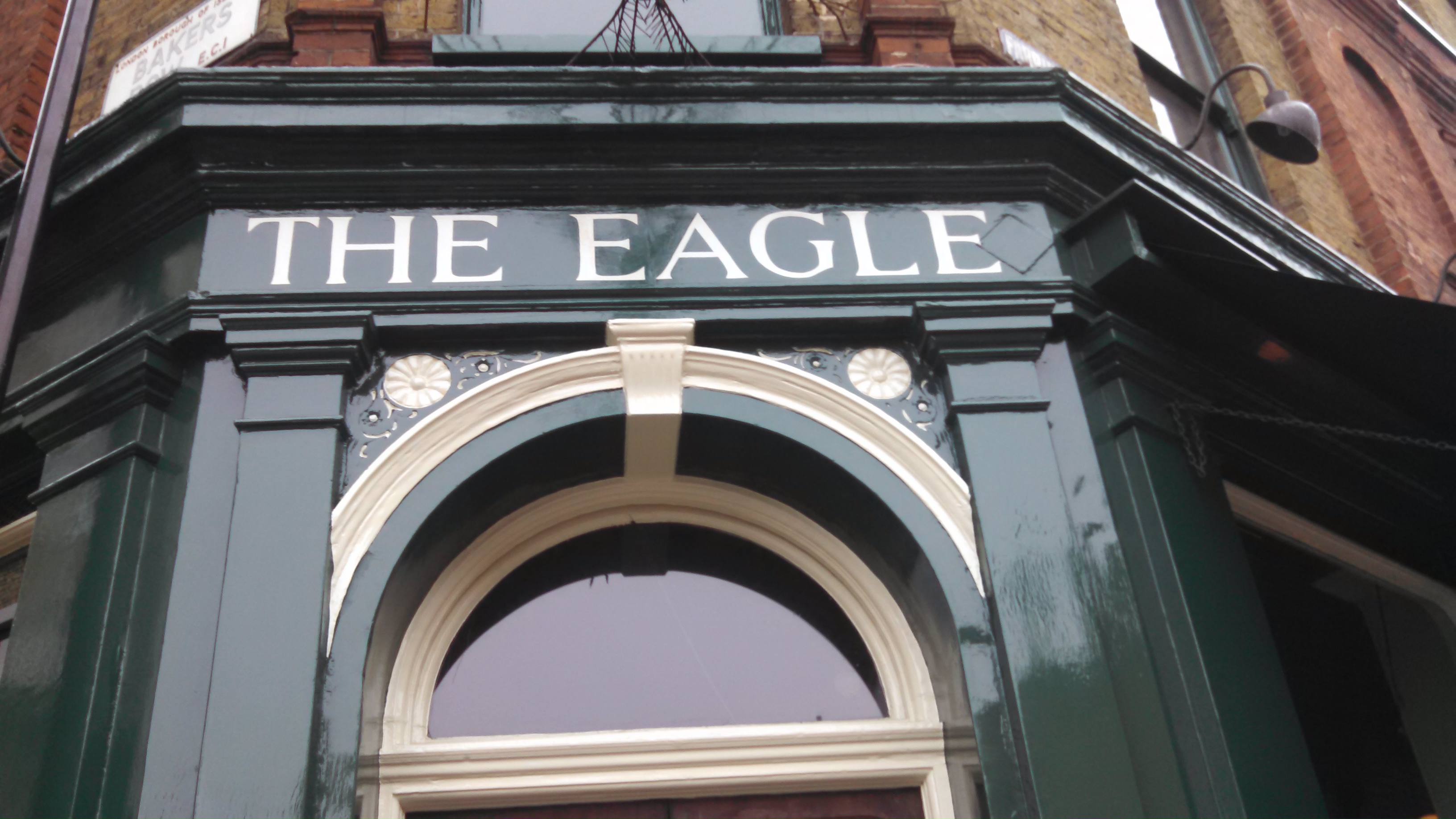 We did some additional walking around our neighborhood before taking the tube to have lunch with my former boss near Russell Square. Although many of my bosses across jobs have been fired, and a few were promoted, and a few left the company on their own speed, an oddly large percentage of my bosses have relocated to London. (“Hello there! It’s come to our attention that you are the boss of Amy O. Would you prefer the pink slip or the relocation to London?”) One such boss relocated to London recently. I am confident he was not the subject of the scenario I just laid out. We met him and his wife at their temporary housing and walked to a cool Spanish gastro pub called The Eagle. I had a glass of Rioja and a lamb tagine, very yummy if a bit spicy. My husband had pheasant. I forget what the boss and wife had, but it was certainly pretty. This was the first pub I’d been in that was frequented by a great many well-behaved dogs. We had a good gossip and then walked over to the Angel tube. True to normal match-day weather, the sky was starting to spit raindrops.