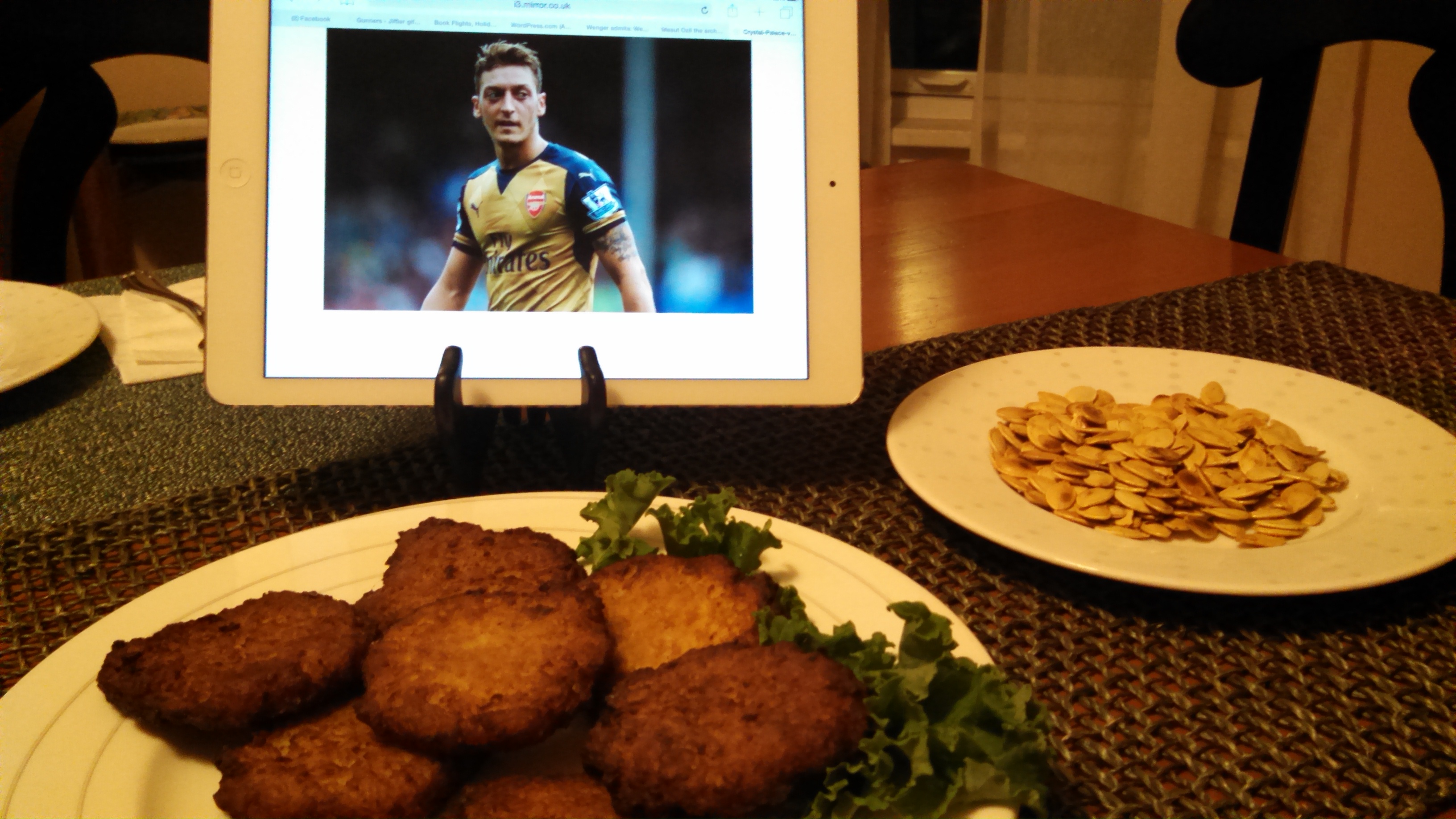 Ozil looks disdainfully at the frozen potato pancakes.