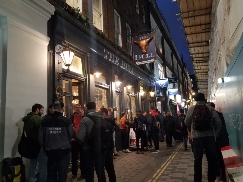 Because we’d failed in our quest to get London Pride beer on Saturday night, my husband felt we really needed to top off our dinner at the Astronomer, a pub near our hotel. We settled in with our beer and were befriended by a guy who claimed he was from Cypress and an Arsenal fan. I found he did not seem to know much about the team or the match that had just been played. However, he did have an interest in our buying him beer.