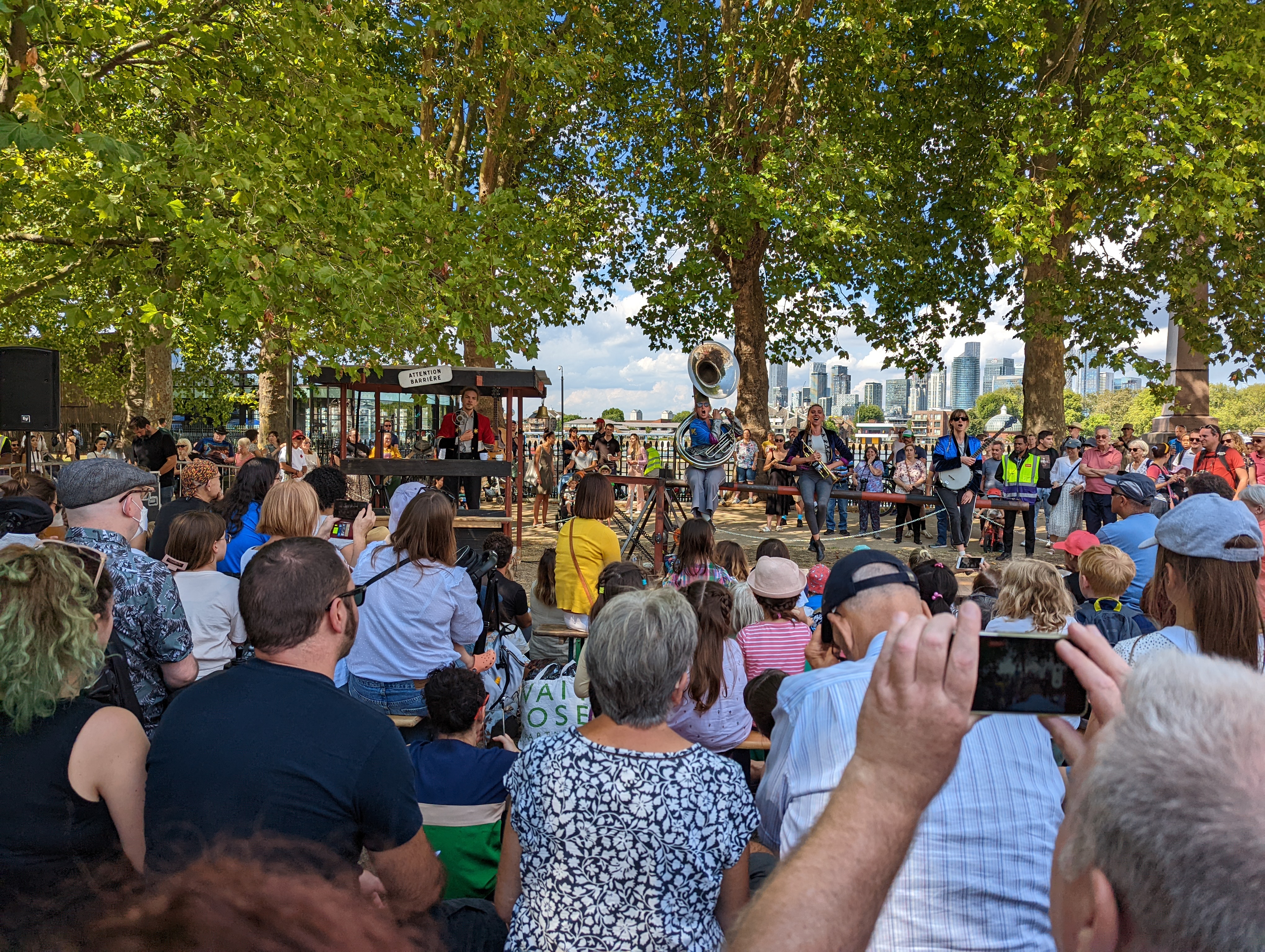 The play running yesterday was Much Ado About Nothing, one of Shakespeare’s comedies. Although both my husband and I were English majors and took several semesters of Shakespeare, neither of us remembered the plot of this play. Like all Shakespeare comedies I can remember the plots of, the play features the intrigue of love. The play was wonderful, so well acted, and the groundlings for sure had the most fun and produced the most fun for those of us in the seats. Like being in the front row of Blue Man Group, groundlings are an important part of the show….and do get wet.