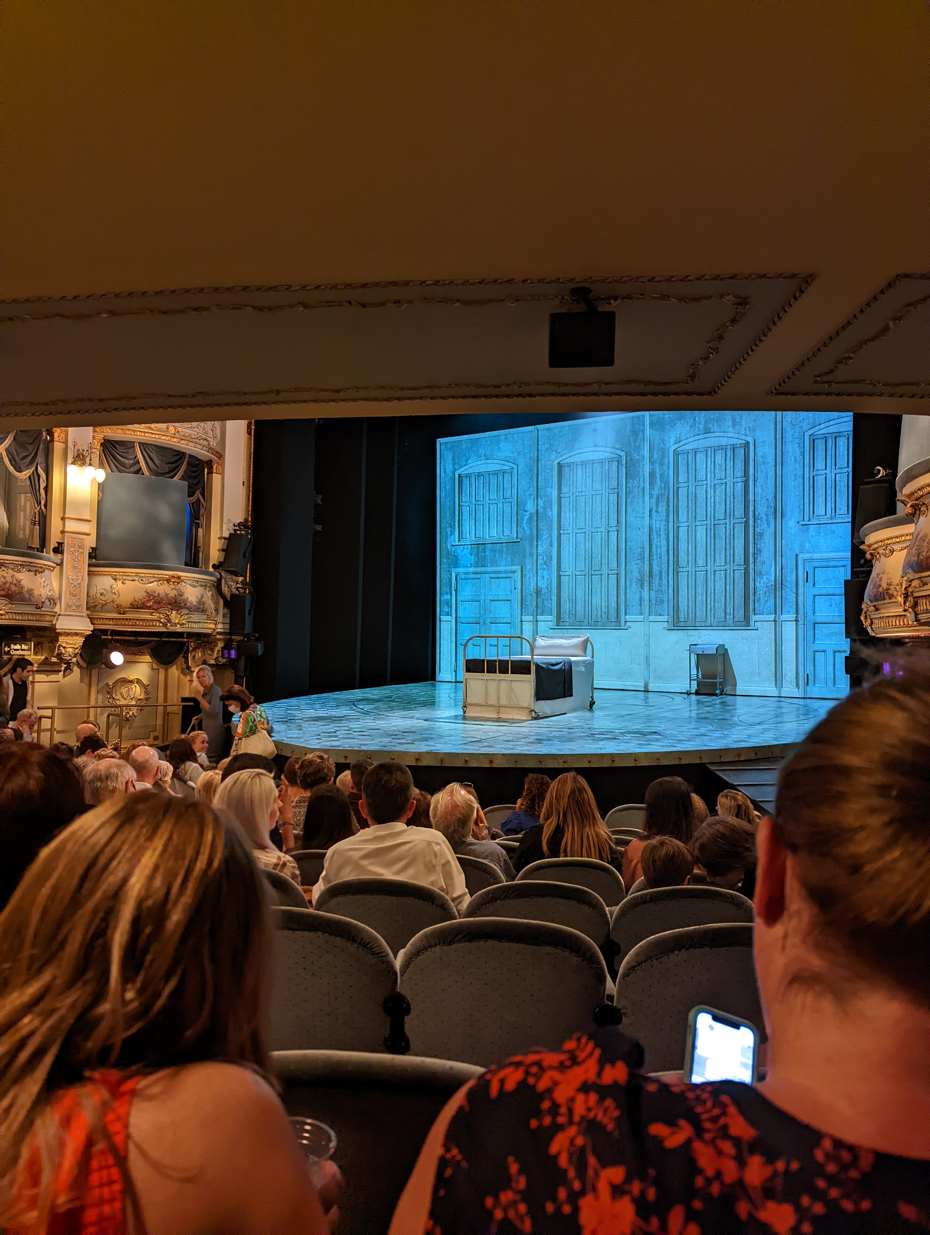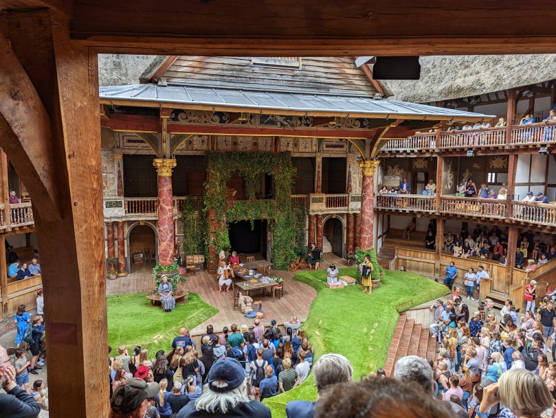 In truth, my actual hope has not only been to attend a play at the Globe, but specifically to attend as a groundling, a peasant attendee who has to stand throughout the performance right at the front of the stage. You can attend as a groundling for £5, assuming you are lucky enough to get a ticket. Sadly, groundling tickets were sold out already when I was attempting to book, and really, almost all tickets for yesterday’s performance were sold out. My husband and I had tickets in different sections of the theatre.