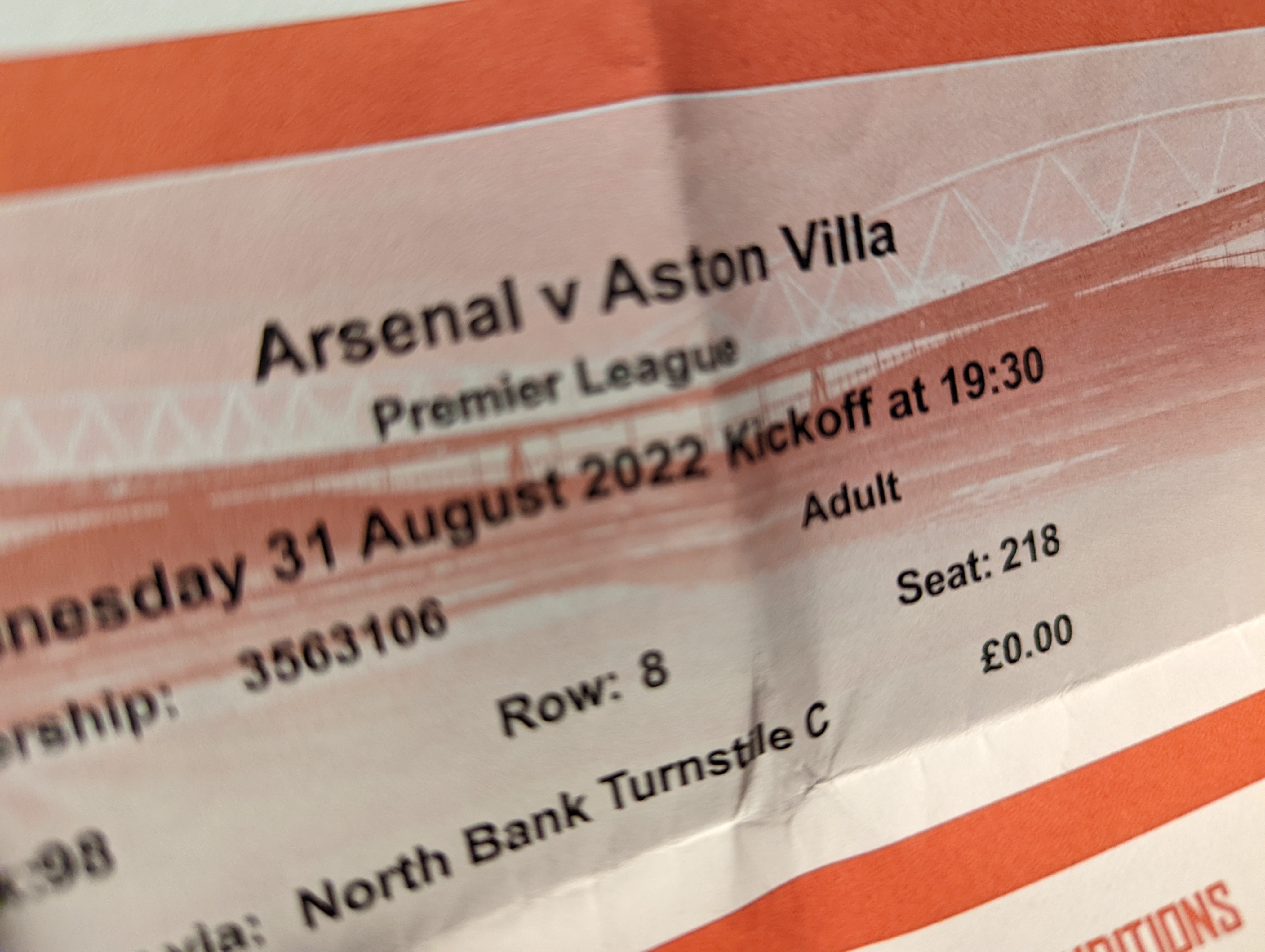 Arsenal played Aston Villa Wednesday evening. Funnily (to me), they are referred to as “Villains.” Aston Villa was the team Arsenal played on the last day of the the 2016 season that we were lucky enough to attend. They had already been relegated by the time of the match, and what most of that team had to play for was the opportunity to be picked up by an alternate team remaining in the Premier League. Although Aston Villa put up an early fight in that match, Arsenal beat them handily in the end. That happened to be the last time Mikel Arteta (our current manager) played in before he retired. He was instrumental in the last goal scored, although it ultimately when down as an own goal.