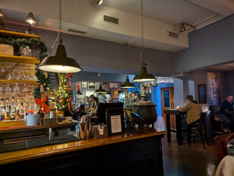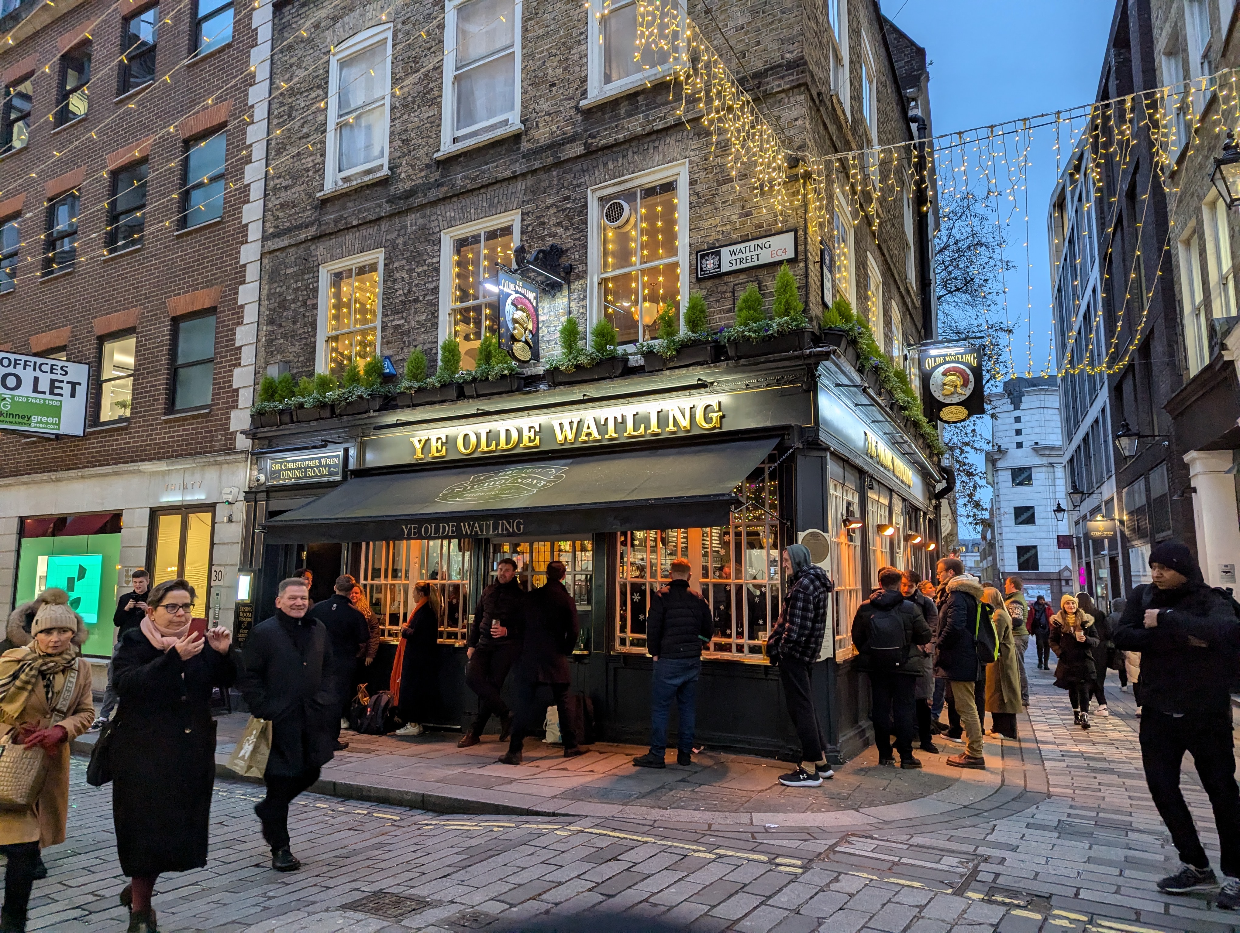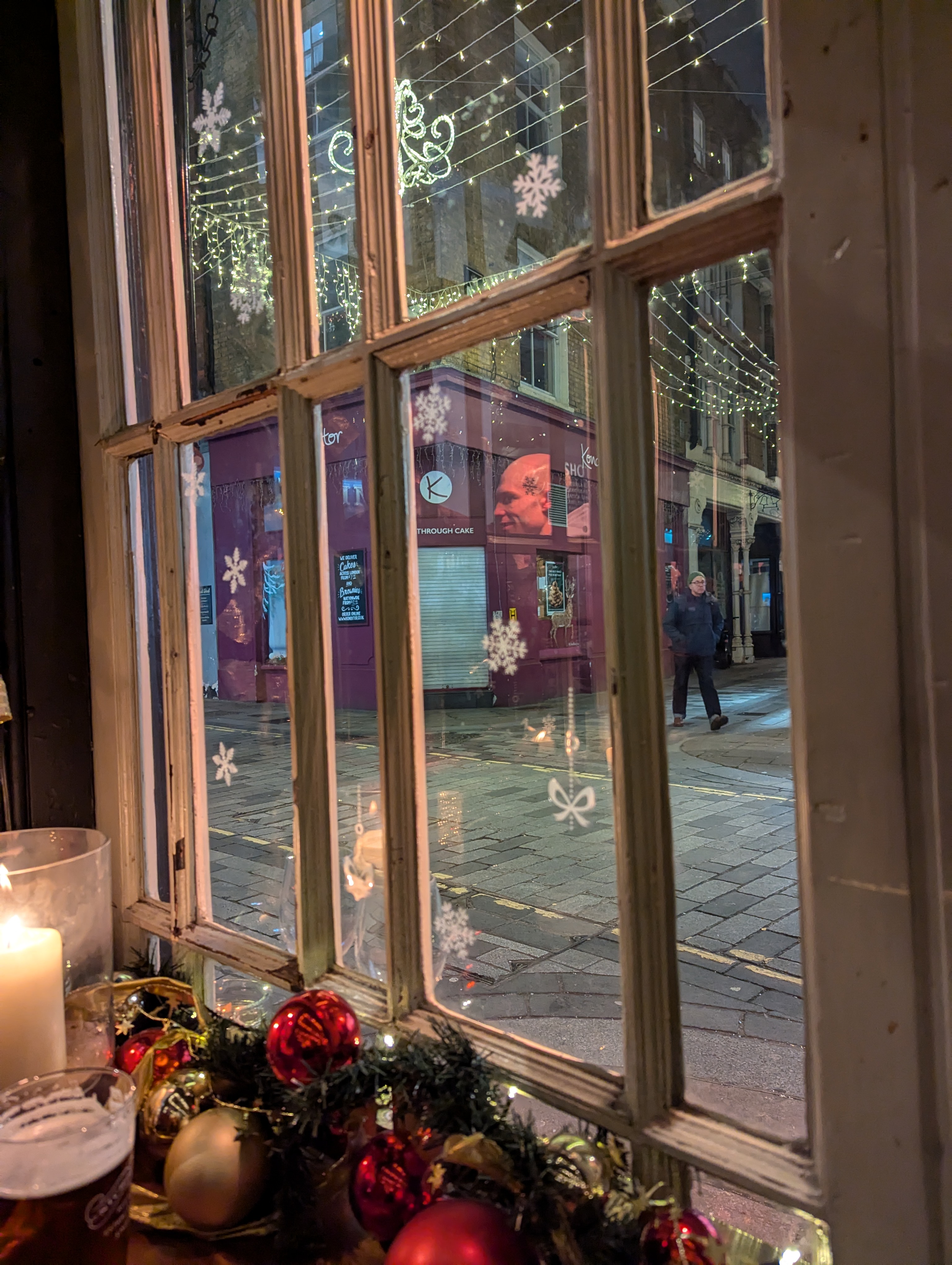 With regard to relaxation, we visited the historic Gordon’s Wine Bar, one of our favorite places to hang out and have a glass of wine in an outdoor garden under a very functional heating unit. We also visited a ridiculous number of pubs considering we were in town only for a long weekend. I love the pubs in London under normal conditions but during the holiday season they are beacons of warmth and cheer. They are decked to the hilt with lights and candles and garland, have special, fun menus and drinks, and are full of cheerful Londoners in Santa hats and Christmas sweaters and holiday tights. We visited Old Bank of England, Williamson’s Tavern, The Admiralty, and Ye Olde Watling. Old Bank of England is one of the grandest pubs I’ve visited, which I would have said about The Admiralty if the prior day I had not been in Old Bank of England. Williamson’s and Ye Olde Watling were cozy and friendly. My husband declared the Blade of Beef & Ale pie served in Old Bank of England to be the best beef pie in all of London. I think my favorite meal was just a delicious hamburger from The Admiralty. And the Hedgerow Berry Mess was also yummy.