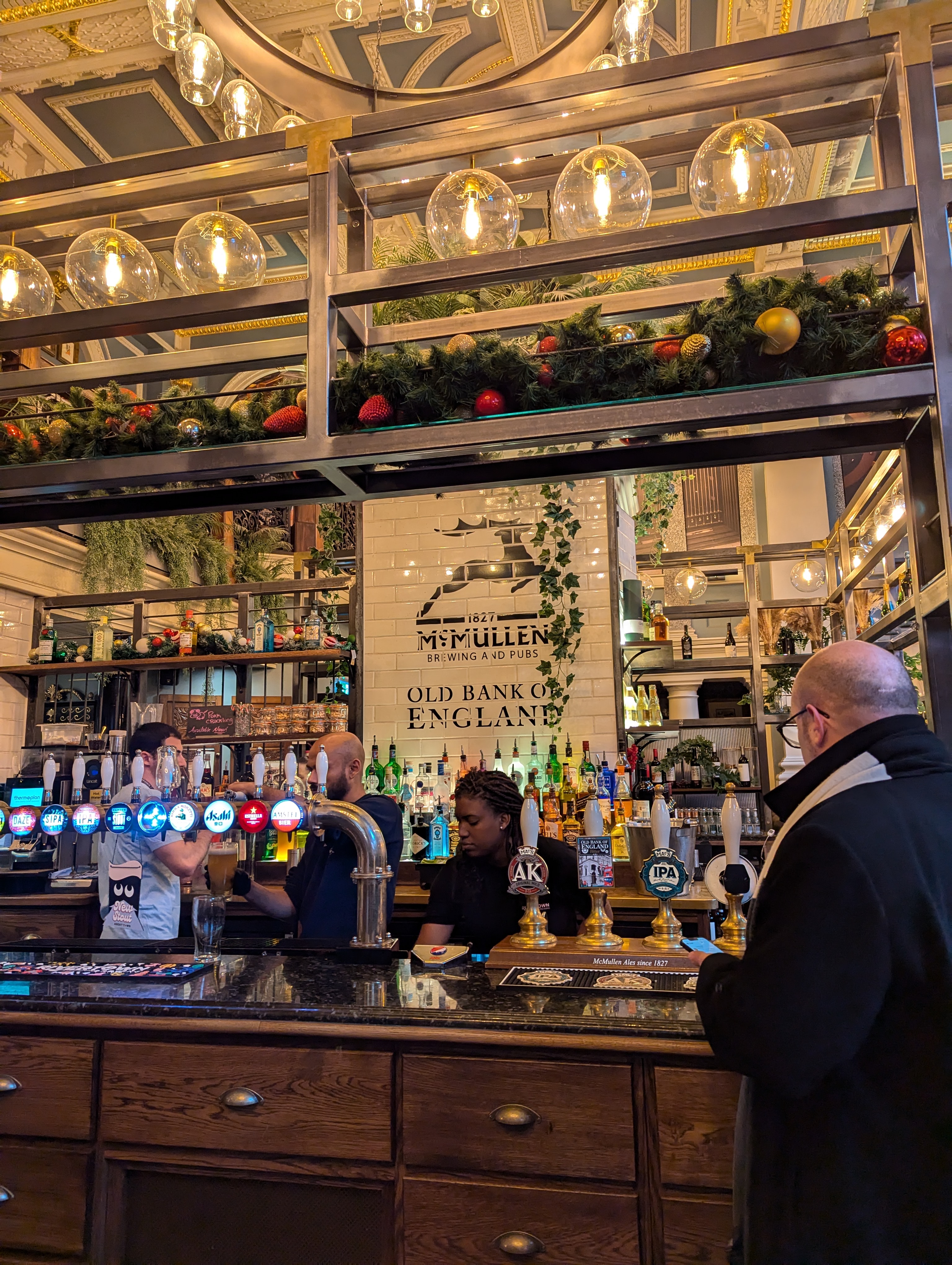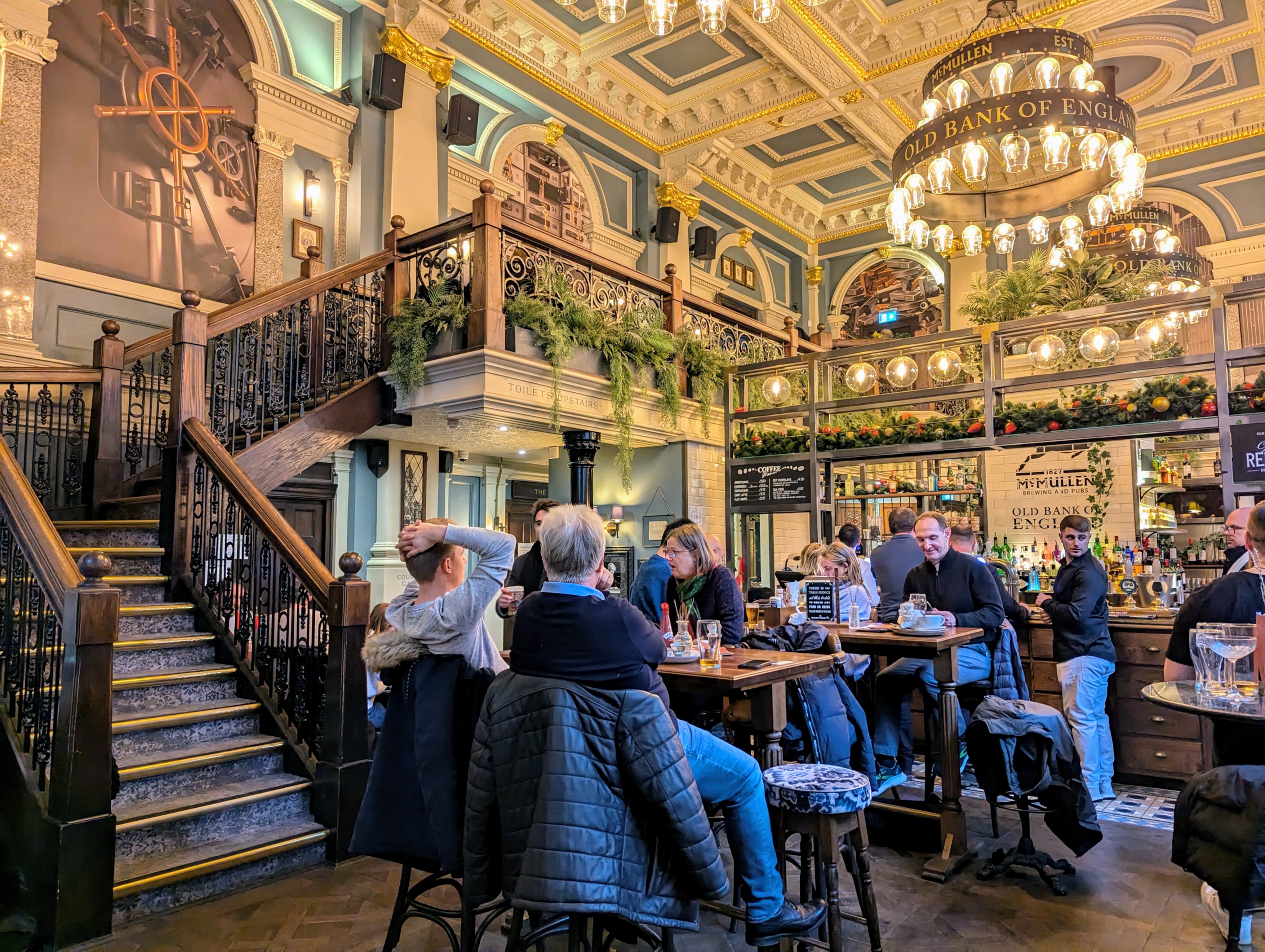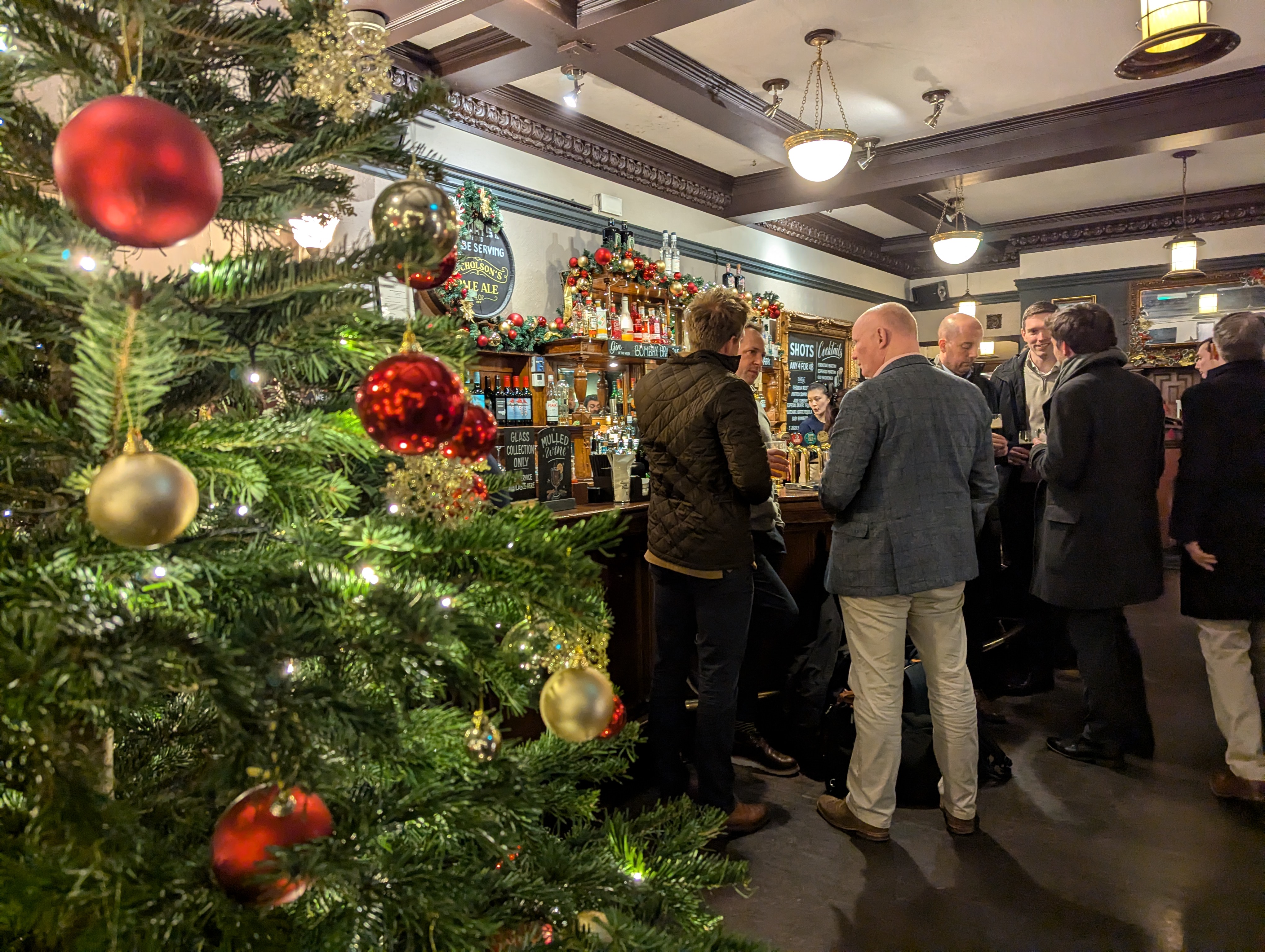 With regard to relaxation, we visited the historic Gordon’s Wine Bar, one of our favorite places to hang out and have a glass of wine in an outdoor garden under a very functional heating unit. We also visited a ridiculous number of pubs considering we were in town only for a long weekend. I love the pubs in London under normal conditions but during the holiday season they are beacons of warmth and cheer. They are decked to the hilt with lights and candles and garland, have special, fun menus and drinks, and are full of cheerful Londoners in Santa hats and Christmas sweaters and holiday tights. We visited Old Bank of England, Williamson’s Tavern, The Admiralty, and Ye Olde Watling. Old Bank of England is one of the grandest pubs I’ve visited, which I would have said about The Admiralty if the prior day I had not been in Old Bank of England. Williamson’s and Ye Olde Watling were cozy and friendly. My husband declared the Blade of Beef & Ale pie served in Old Bank of England to be the best beef pie in all of London. I think my favorite meal was just a delicious hamburger from The Admiralty. And the Hedgerow Berry Mess was also yummy.