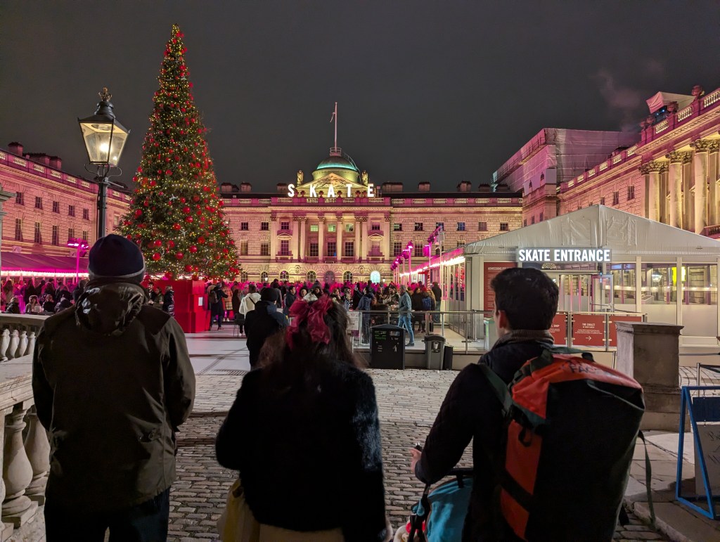 Although our trip to London was brief, it was fully devoted to relaxation and enjoyment. We walked around town, enjoyed the beautiful lights and decorations, visited a pop-up skating rink at Somerset House, and visited a winter festival featuring (for us) choirs performing under a Christmas Tree in Trafalgar Square.