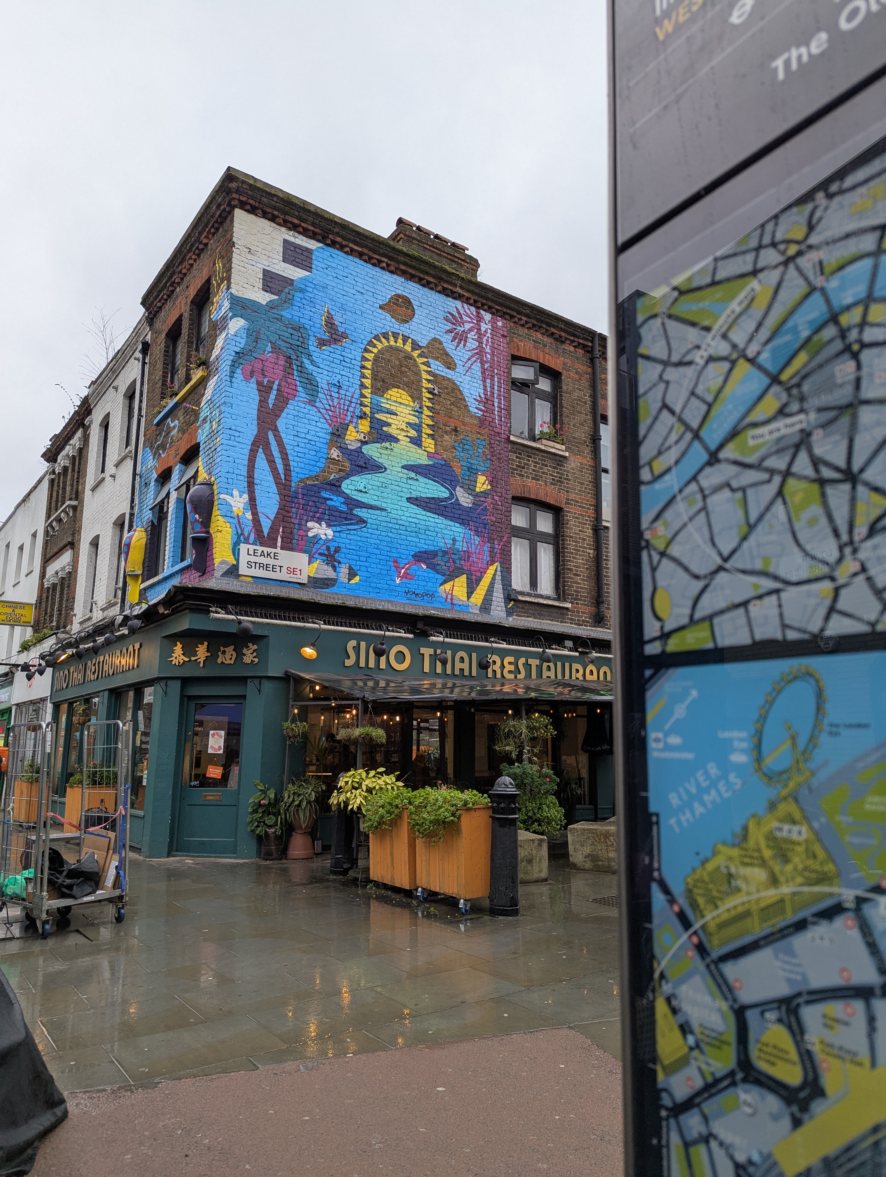 The hotel is located on Lower Marsh Street, which was a real find. Although we were quite close to the London Eye, Big Ben, the Houses of Parliament, the neighborhood had the feel of being very far from all of those things. Funky and a bit gritty, the street was closed to all but bike and foot traffic and, during the day, had a great little market with mostly street food. There were so many other food options available that we never partook of the street food, but it was extremely tempting. We went to a nice Thai restaurant, Sino Thai, for dinner on the day we arrived and enjoyed Cuban tapas at Cubano the next night. We had a yummy breakfast at Balance one morning.