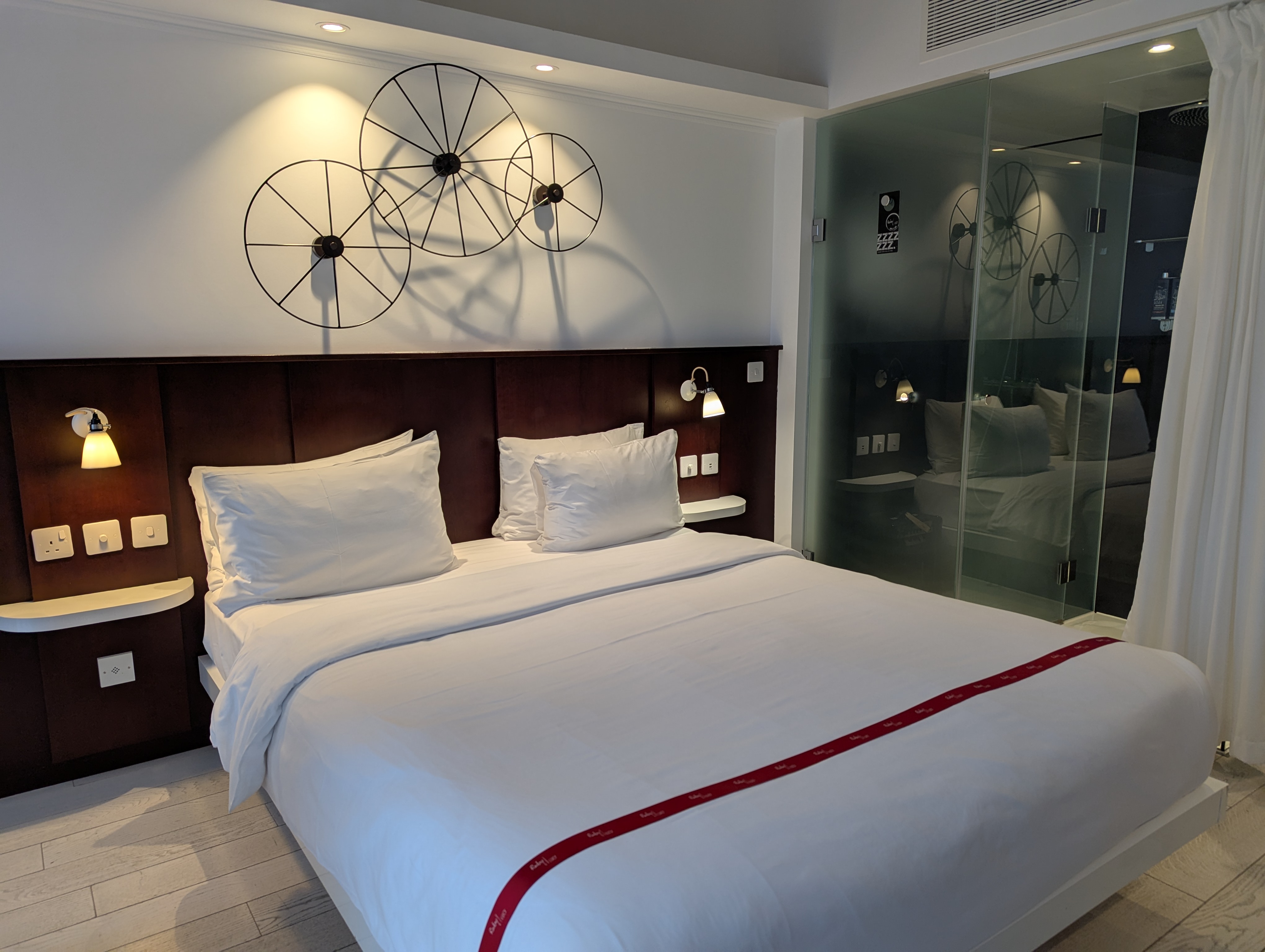 Ruby Lucy was a quirky little hotel with a great lobby and fairly spacious rooms. Each floor has an open tea station just outside the elevators and a communal iron board. Our room had a comfy queen bed and one of those crazy showers that is open-glassed on two sides to the room. It had a curtain on the outside of the shower; i.e., if you’ve failed to plan before you start your shower, the person in the room gets the choice of whether to draw the curtains or not. Good to be well enough acquainted before the trip so the choice made by the person not in the shower creates no drama.