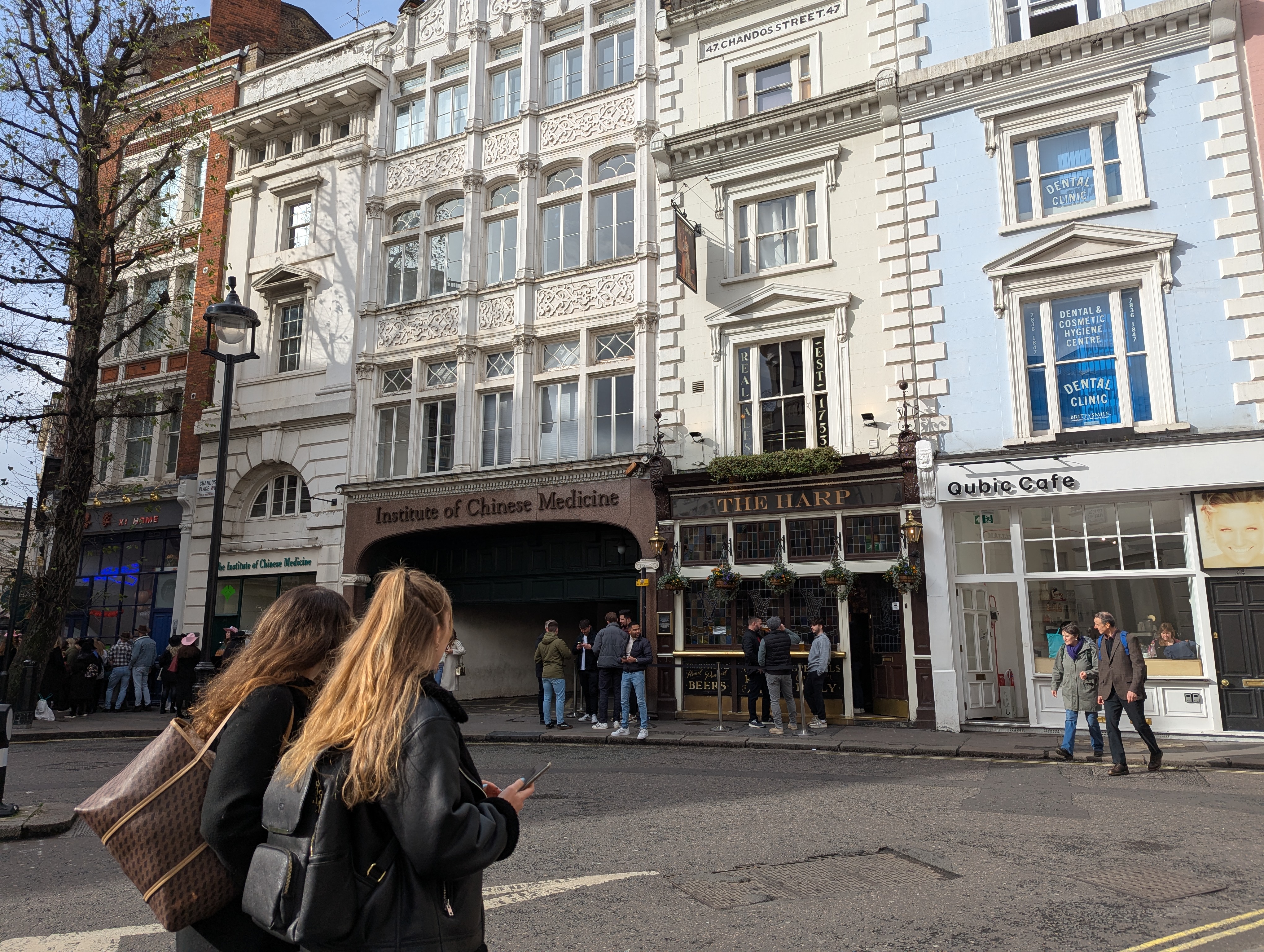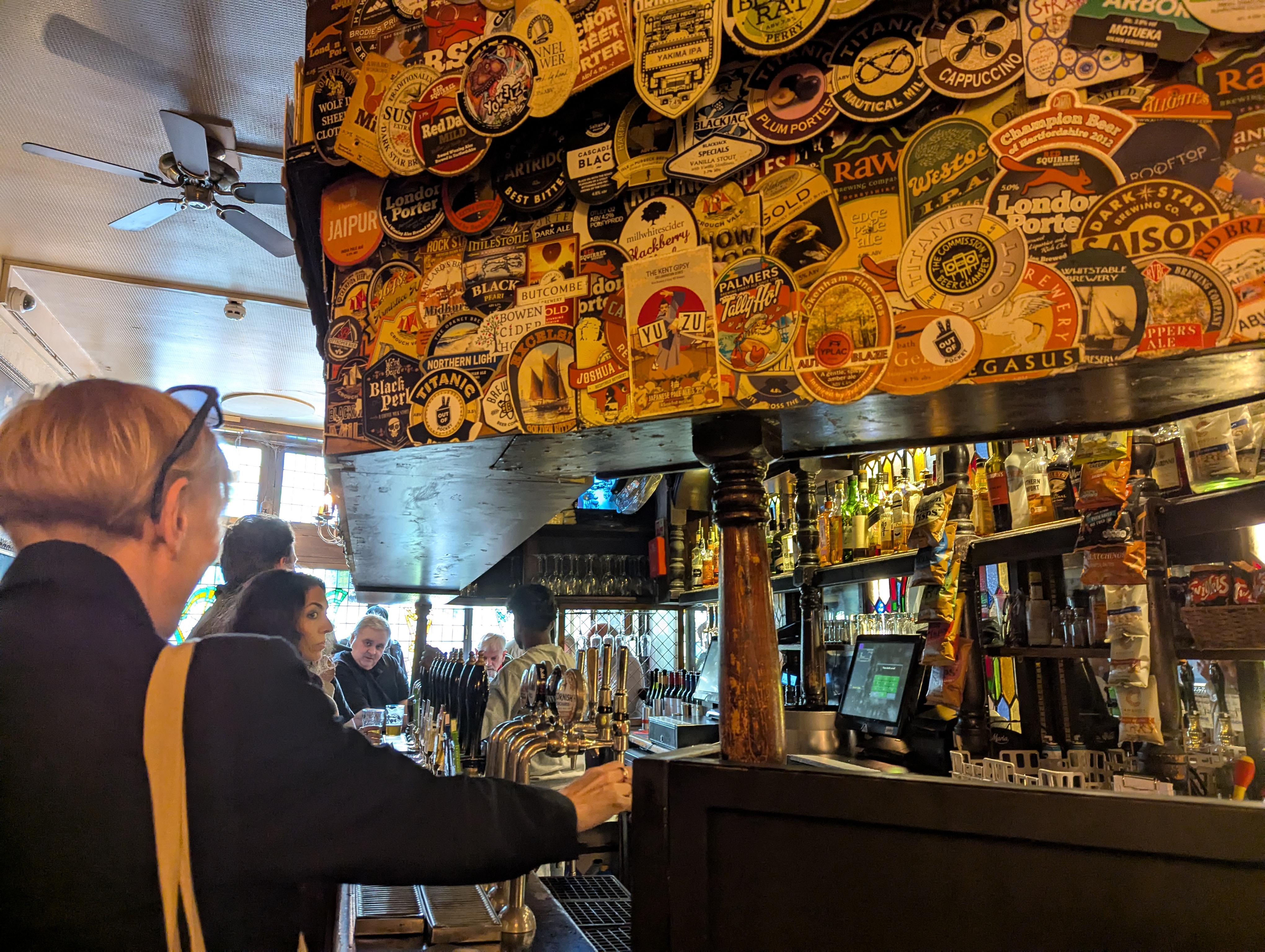 My husband, who you may recall was recovering from a concussion on our last visit and not drinking, was looking forward to visiting all the Fuller’s pubs we could. With three in the immediate neighborhood, we were able to make a good dent in his goal. His favorite beer is a Fuller’s product called London Pride. I bought some for him for Christmas at Binny’s but it’s just not the same as knowing that it is being drawn from a cask in the basement of the pub. Or so I’ve heard. The Fuller’s pubs in our neighborhood were nice but not quite the pub experience we wanted. One day we left our neighborhood for the highly rated The Harp in Covent garden. Great pub with a fun crowd AND the requisite London Pride. But no food, so after one round and a great conversation with some interesting folks, we crossed the street to visit The Admiralty, a place we’d eaten on one of our visits in December. Also a Fuller’s pub. 5 Fuller’s pubs in all; not bad for a trip with boots on the ground for three nights.