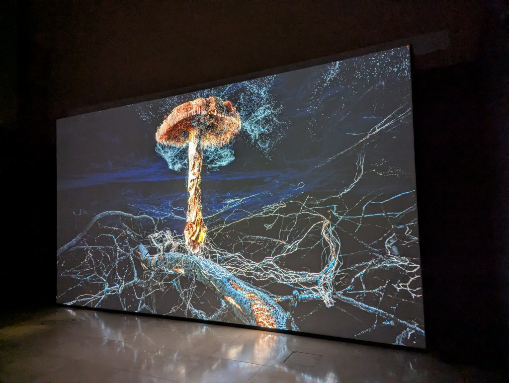 It was unbelievably fascinating. Photos of tiny bacteria blown up huge, video of the sights and sounds of roots growing, a mesmerizing video of the development of a mushroom, including ethereal flows of spores. Information on gardening techniques. Stories of human response to plants, flowers, gardens. Every time I tried to hurry along some new narrative or visual captured my attention. Highly, highly recommend this exhibit.