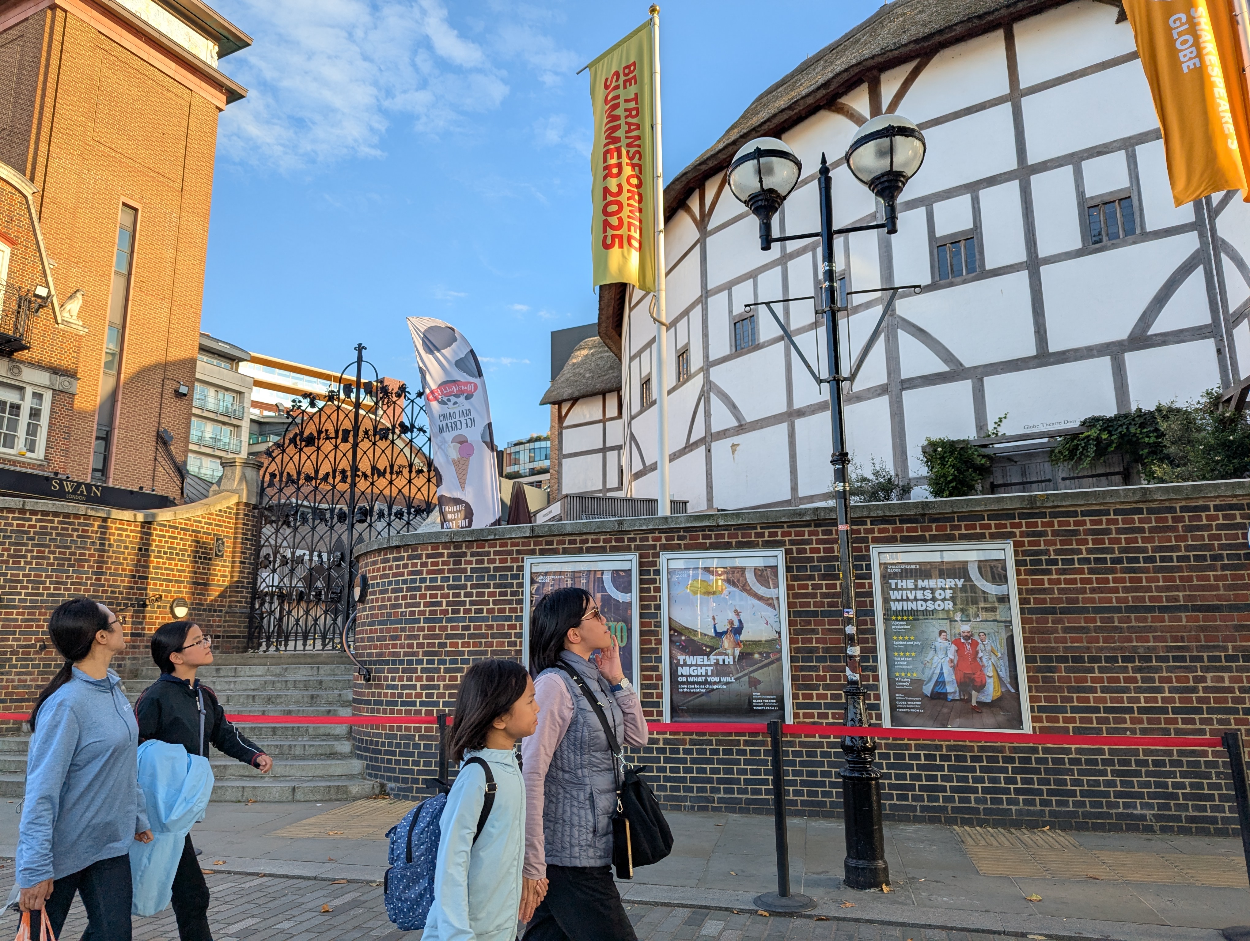 I’ve often felt that my favorite, most meaningful activities in London have been the cheapest and this trip also had those cheap–and free–moments. Although it’s been our rule not to go to a theatre production on the night we arrive in London, lately it’s more like a guideline. As soon as we booked our flights we checked in on what was playing at Shakespeare’s Globe Theatre since the outdoor theatre is only in use during seasons in which temperate weather can be expected. In the course of the football season that’s usually only possible early on. There was only one performance that would work for us, the one on the Friday night we arrived in London, which turned out to be a late arrival after significant flight delays.