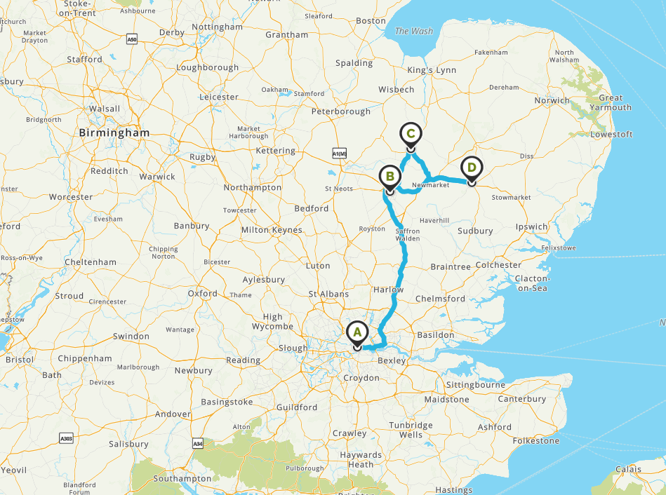 Now that I’m retired it’s less important to keep our trips to London brief. It occurred to us that when we are able to get tickets for two Arsenal matches a weekend apart it would be possible for us to travel outside of London during the week. In planning for this trip, we looked at possibly going to Sicily or Norway between the two matches. However, my husband got the idea of visiting East Anglia, the area in England northeast of London. He did some work with Chat GPT to plan out the trip, ultimately settling on a trip that would involve touring from bases in Cambridge and Norwich. We’ve done very little touring outside of London and were both excited about seeing more of the country.