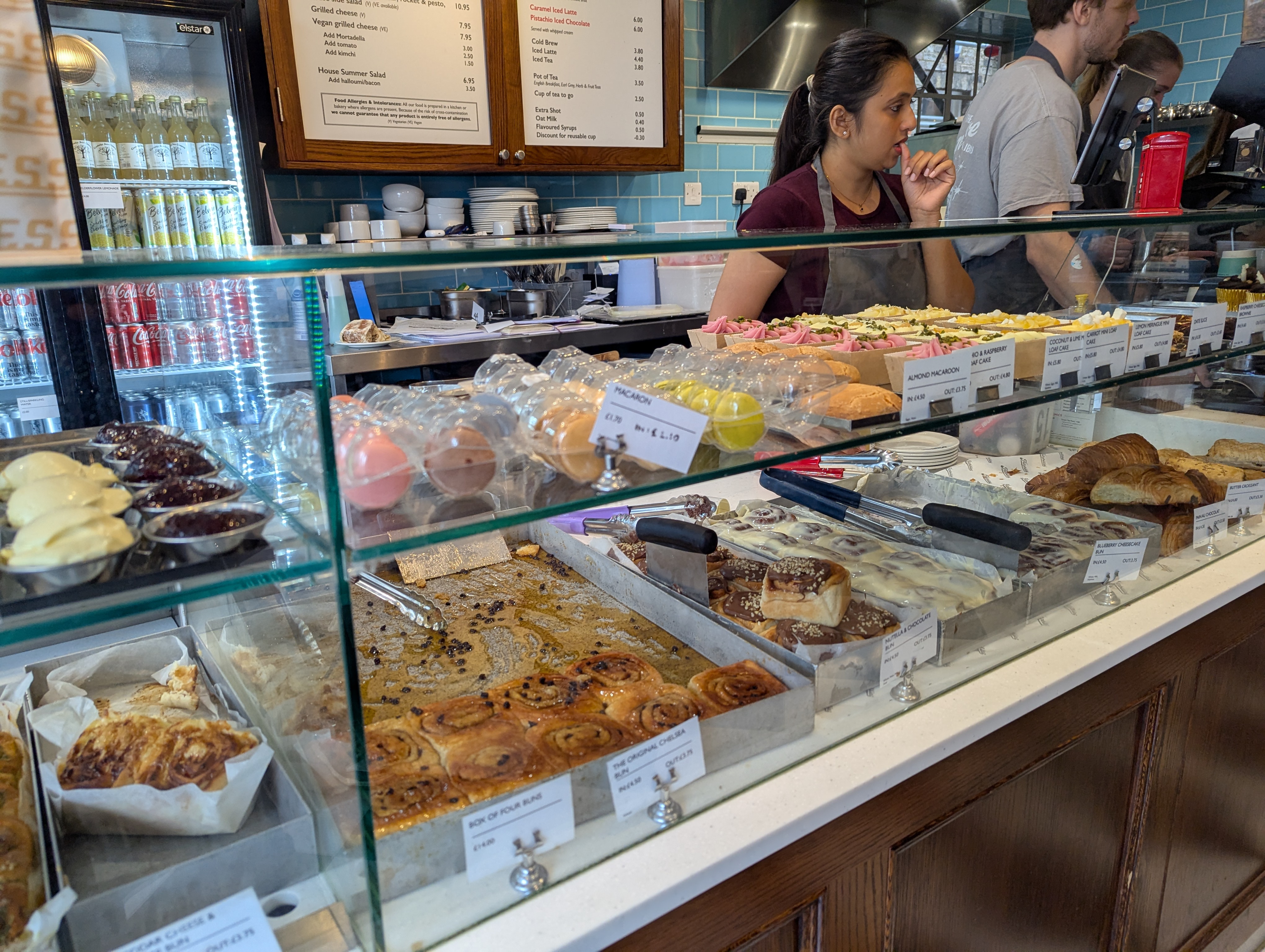 I treated the whole week in London like carbs don’t count. At all. If I wanted a blueberry brioche for breakfast at Gail’s, which I did almost every day–except the days when I wanted a scone with clotted cream–well, I had it. Yeah, I suspect it might be frowned on to have a scone for breakfast, just like in Italy it’s frowned on to have cappuccino in the afternoon. I have been corrected in Italy for my errors, but no one in England has ever corrected me to my face. I’ve already described the cream beignet I had from Fortitude Bakehouse. Plus I had a big, ol’ Guinness whenever I felt like it. Which was just about every day.