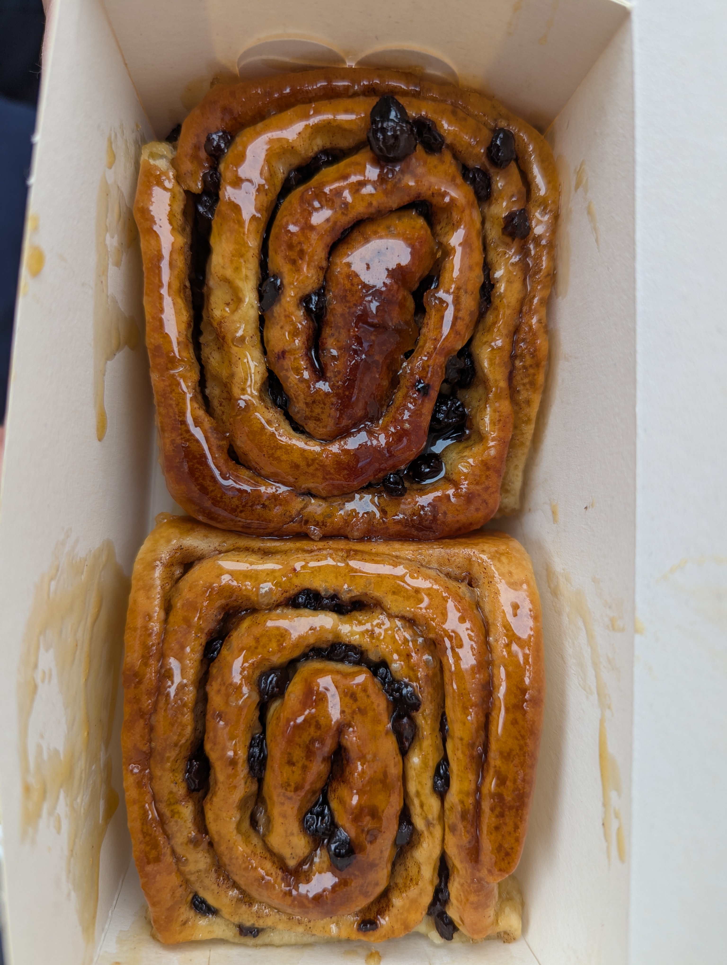 Once at the city center we followed a path along the River Cam where we encountered a great many punting companies soliciting business. We ended up selecting a tour from Cambridge Punt Company. The operator suggested we bide our time until the tour started by visiting Fitzbillies bakery and ordering the Chelsea buns. It was a messy but delicious suggestion.