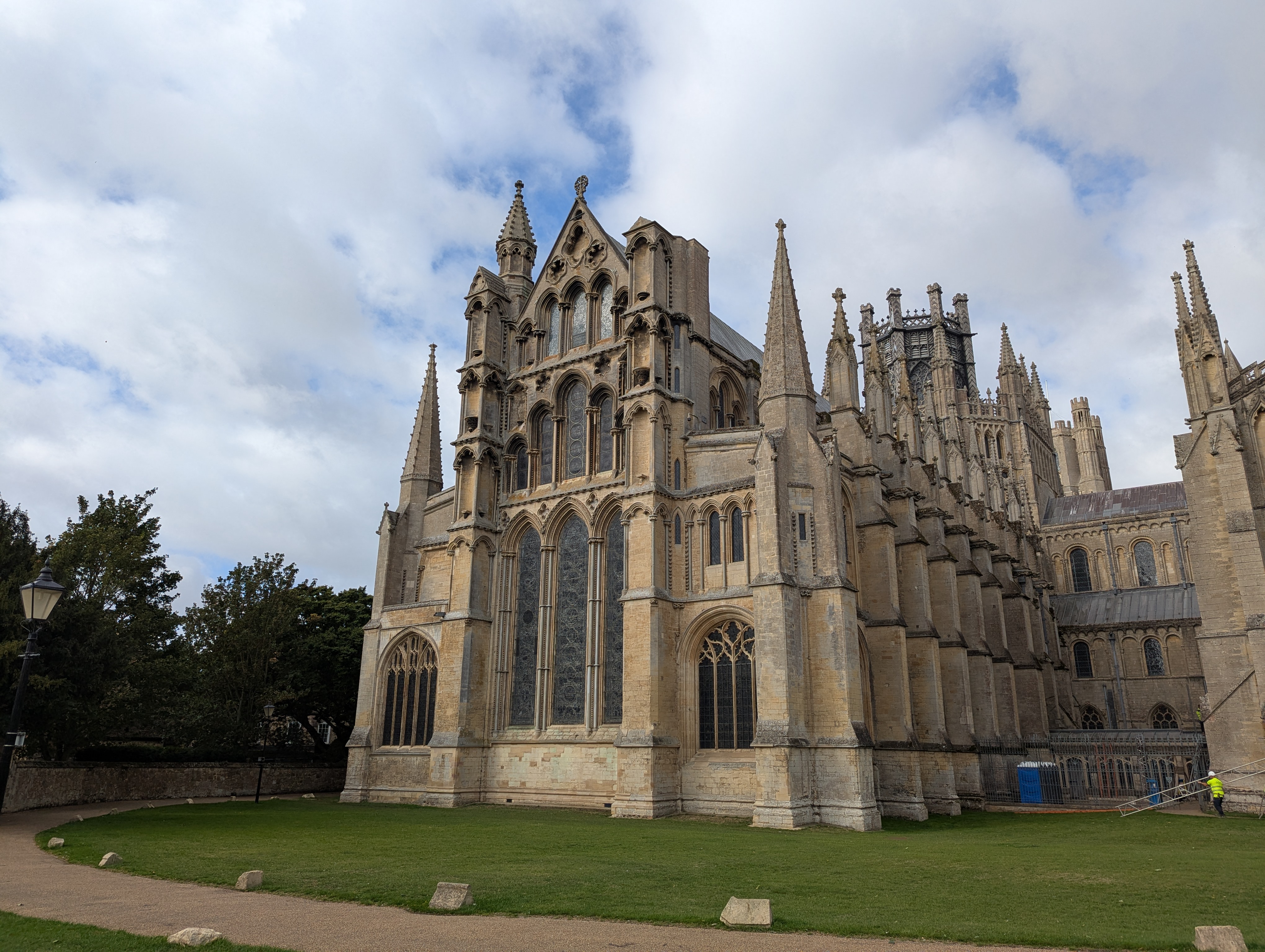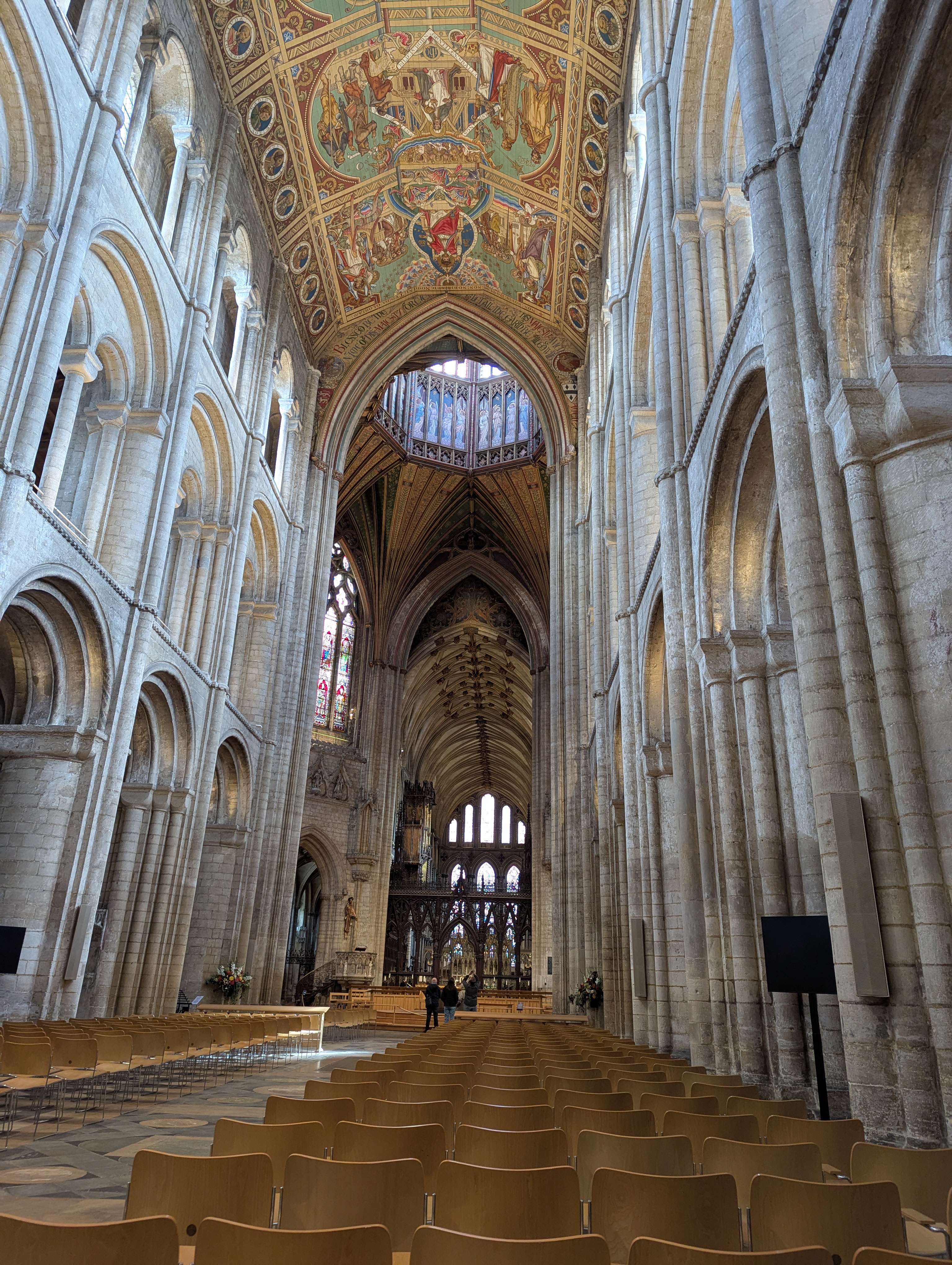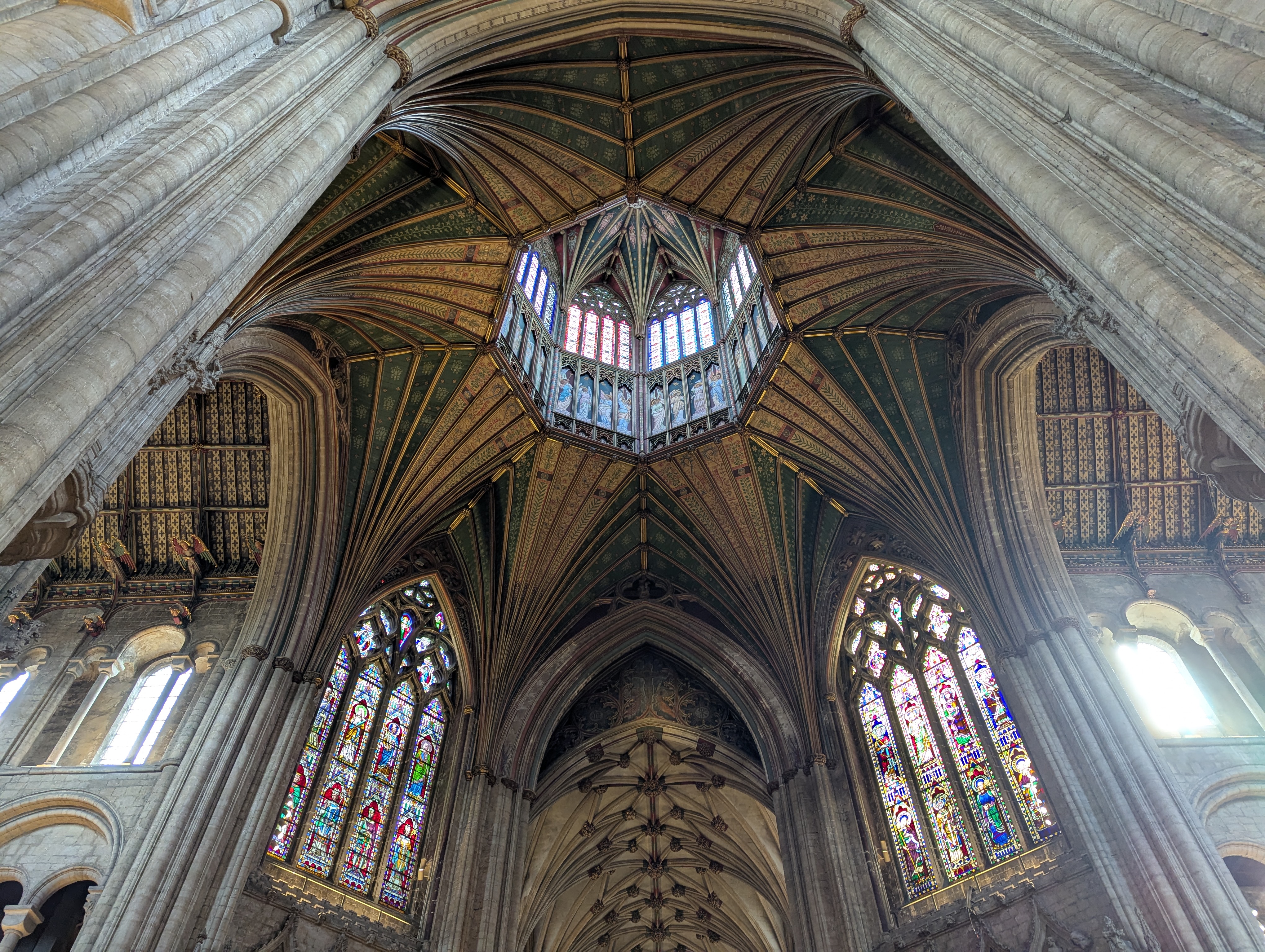 The Cathedral offered audio tours so we could proceed at our own pace and listen to as much or as little as we chose. The audio guide was very well done and I highly recommend using it. We learned all about the history of the cathedral which stood on the grounds of an Abbey founded in the 600s by Etheldreda, the daughter of an East Anglia King. More about her in a later post. The cathedral architecture heavily reflects influences of the Normans who conquered England not long before building occurred. But England history has been tumultuous and the cathedral has been impacted by all of it. Fascinating tour. We spent way more time there than we had planned.