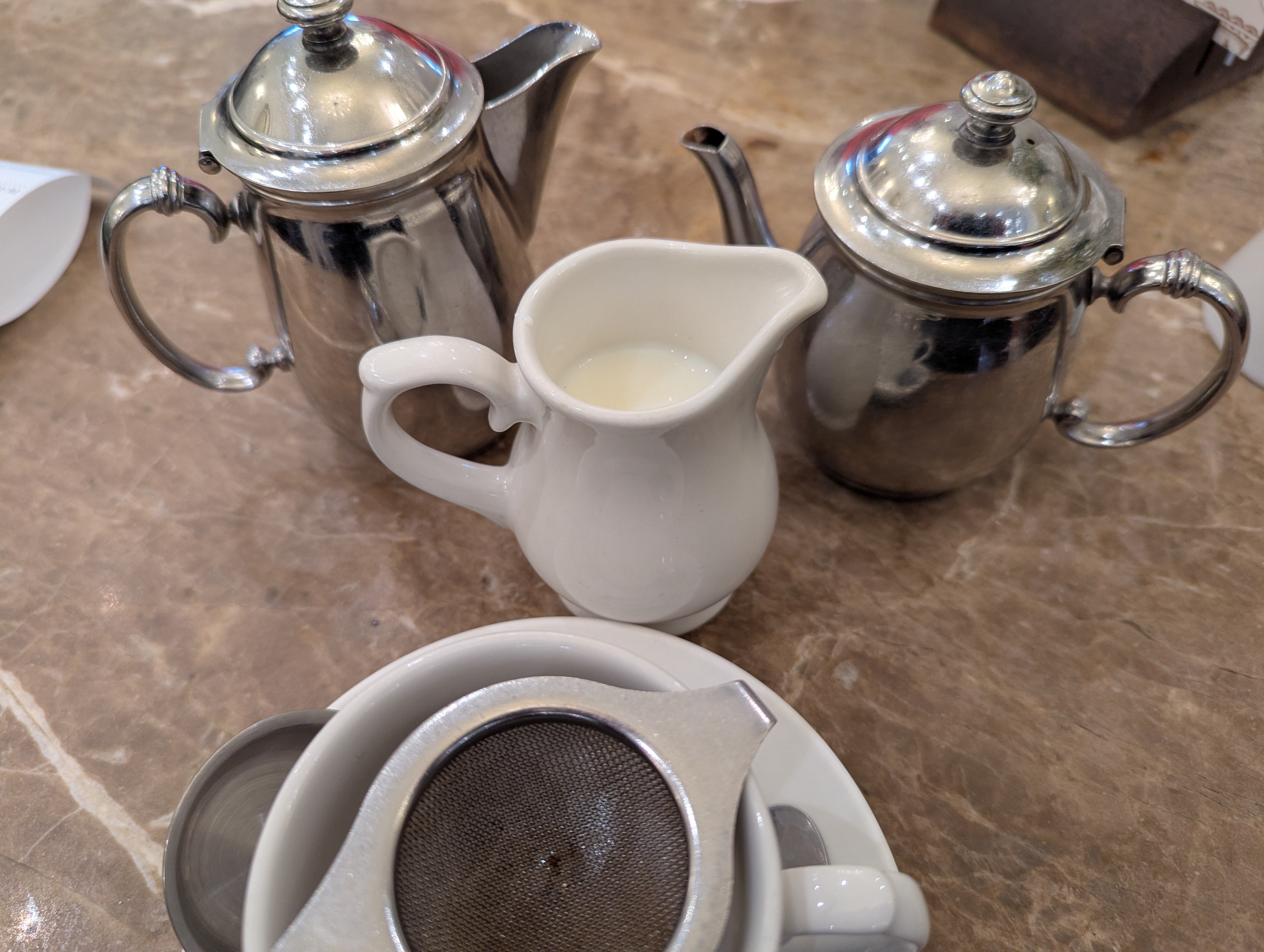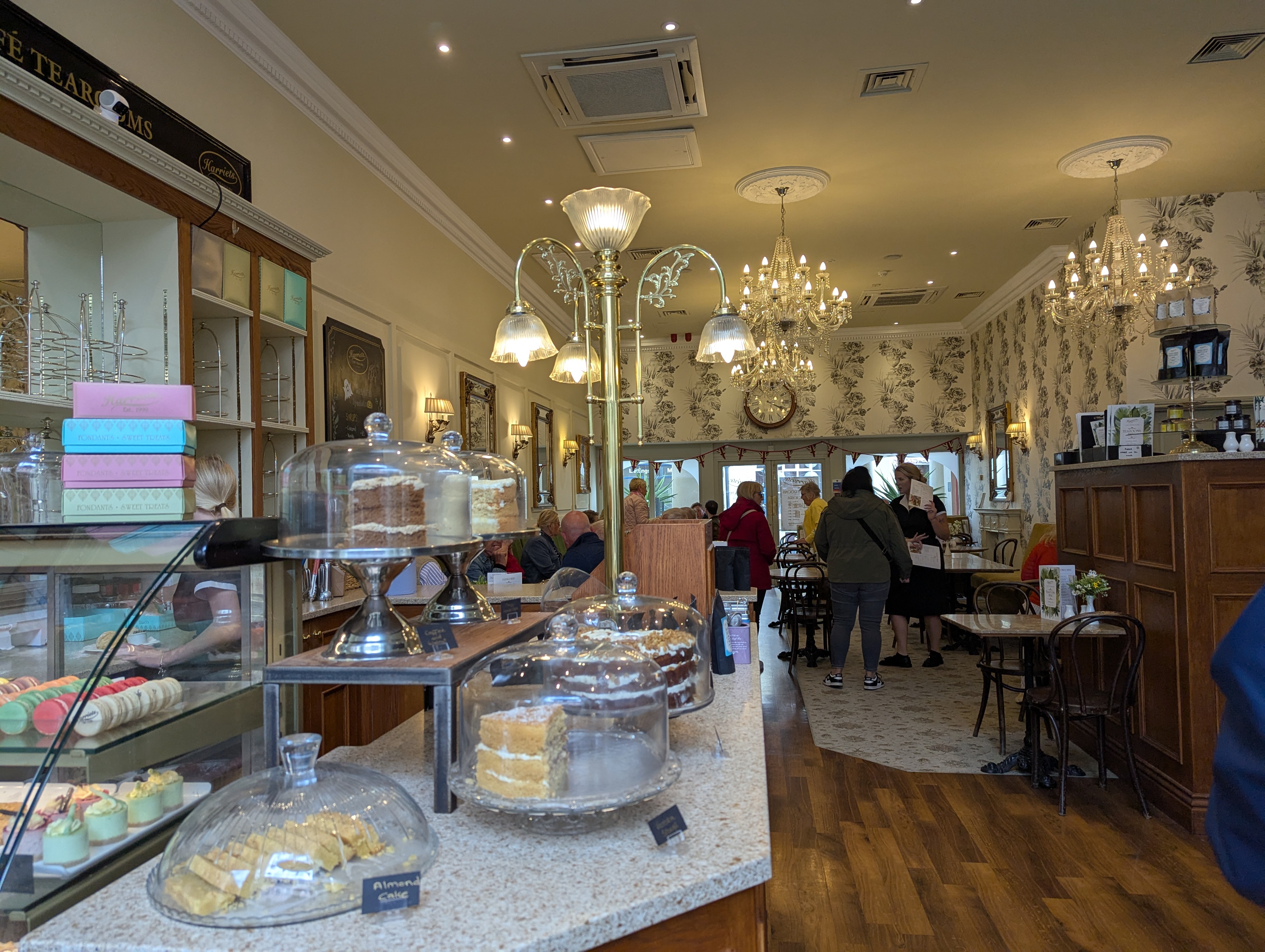 Our next train ride was to a town called Bury St. Edmunds. We stopped to have lunch in a chain called Harriet’s Cafe and Tearooms. We had been wandering about the town trying to find someplace that looked interesting and that place appealed to me. I’d been noticing throughout the trip how much tea rooms seemed to be taking on greater prominence in the towns away from London. Maybe they just attracted more of my attention outside of London. In any case I did have delicious tea with milk along with my cheddar cheese sandwich.
